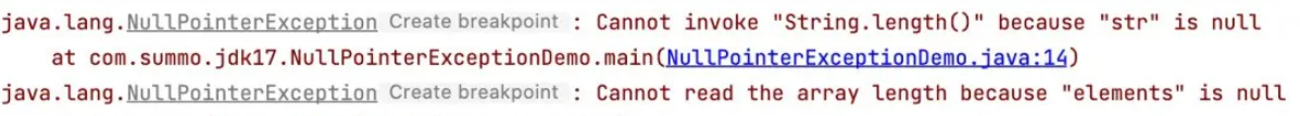 JDK17前只是会报空指针异常错误,但JDK17中会具体到哪个函数报的空指针
