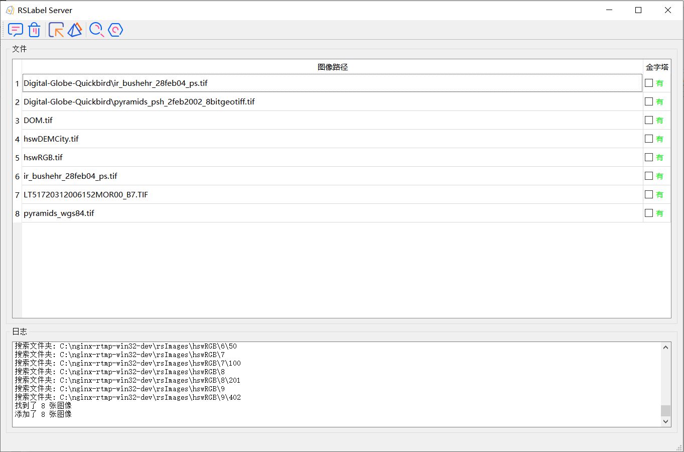 我们添加了一个工具 rslabel-server用来统一管理服务器上大量的图像,服务器接收客户端的请求,并将分块图像传送给客户端。这样,多个标注人员可以在同一个局域网内进行图像标注,而不必将服务器上的文件下载到本地。标注的结果最终被汇集到服务器上。