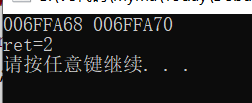 #include<stdio.h> #include<stdlib.h> int main(){ int arr[4] = { 1, 2, 3, 4 }; int* p1 = &arr[0]; int* p2 = &arr[2]; int ret = p2 - p1; printf("%p %p\n", p1, p2); printf("ret=%d\n", ret); system("pause"); return 0; }