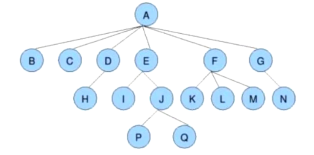 父节点或双亲节点 : 若一个节点含有字节点,则这个节点称为其子节点的父节点 ; 如图 : A是