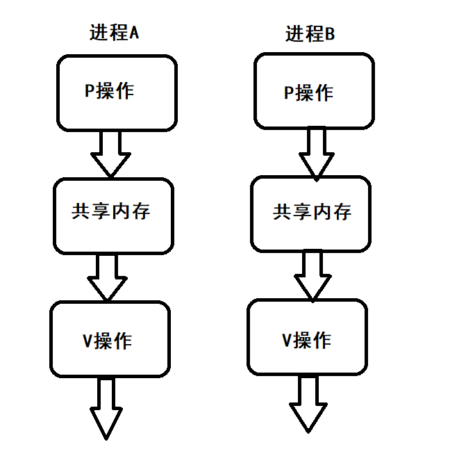 - P操作:会把信号量减去1,相减后如果信号量<0,则表明资源已被占用,进程需阻塞等待;如果相减后>=0,则表示资源可用,进程正常运行
