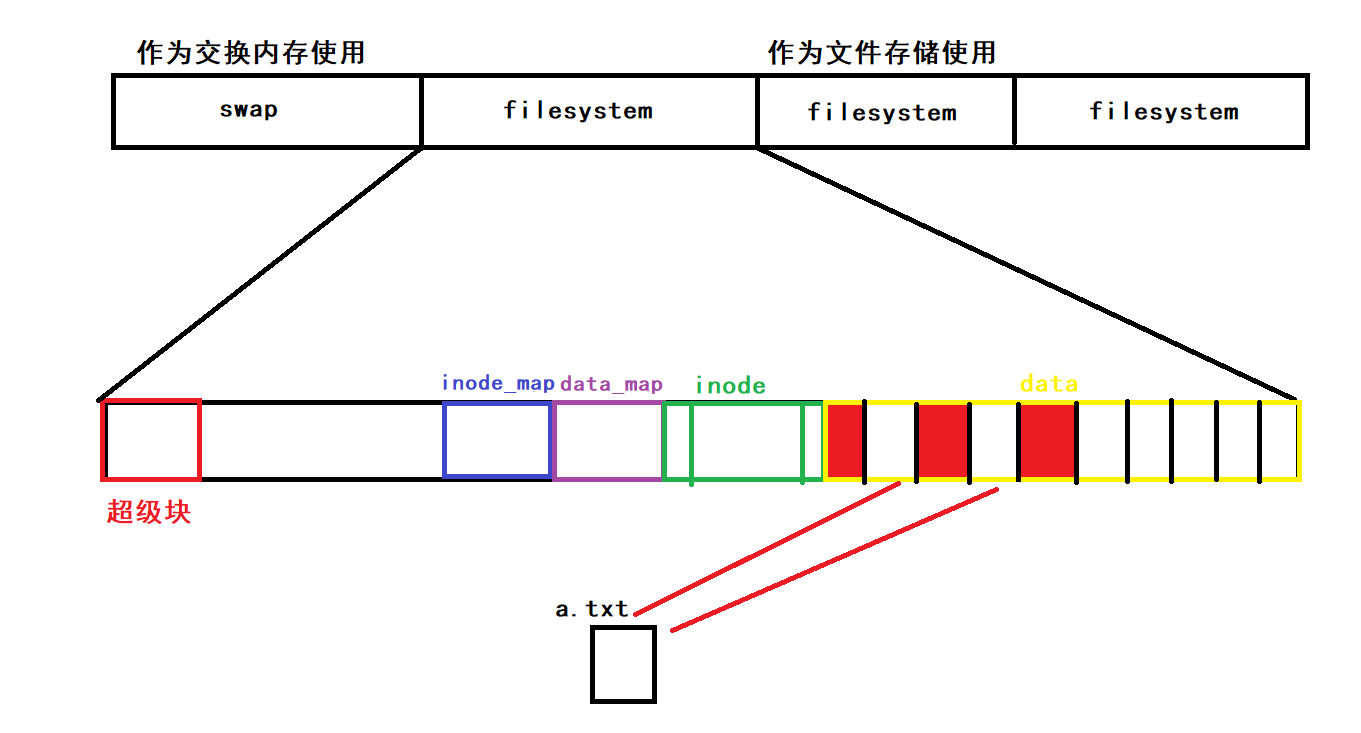 - inode_map:inode结点位图,快速查找未使用的结点位置