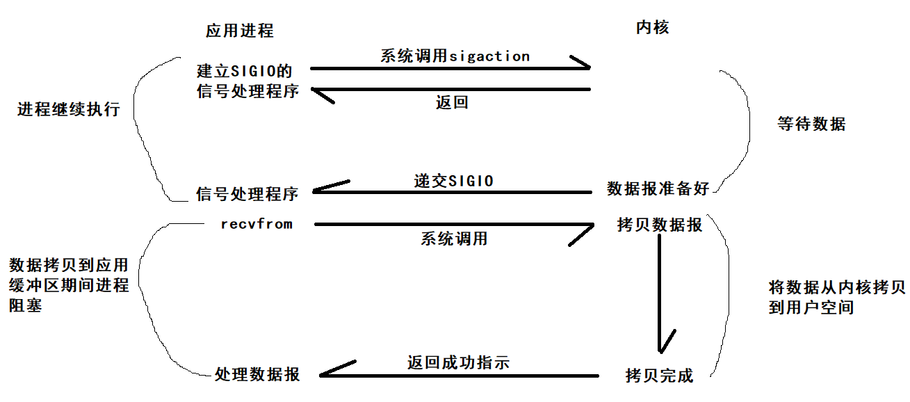 内核将数据准备好的时候,使用SIGIO信号通知应用程序进行IO操作