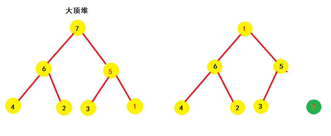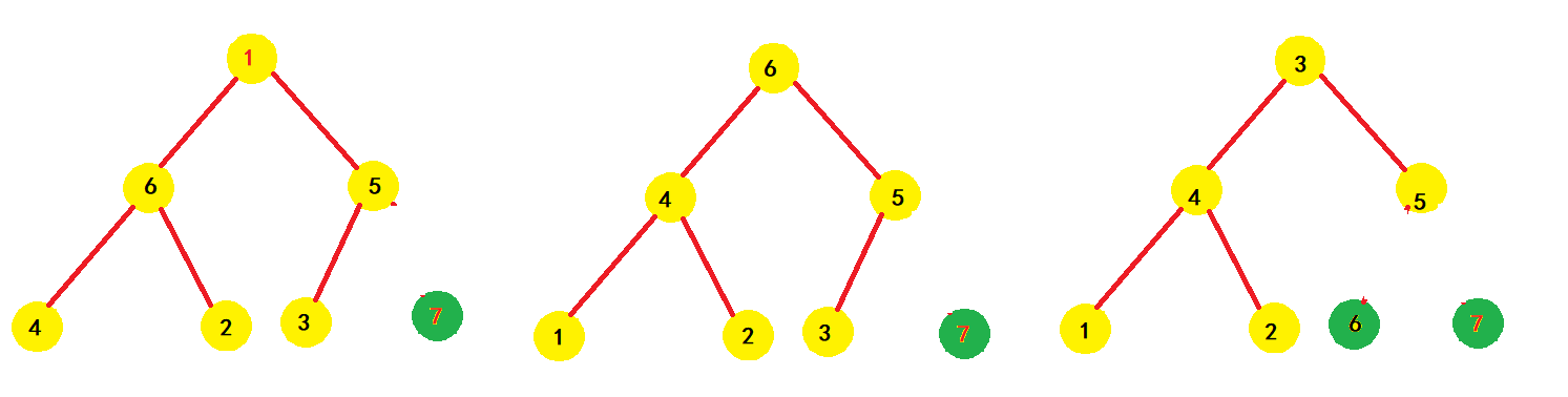 4。继续调整堆为大顶堆,然后重复上述,取出次大元素