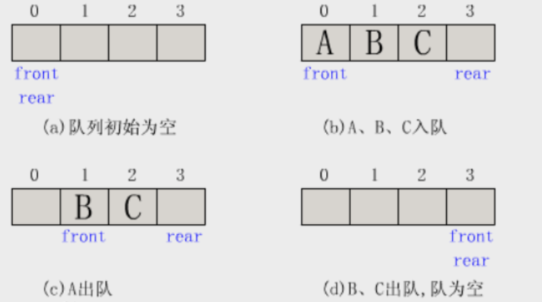入队:从一端放入元素的操作 出队:从另一端取出元素的操作