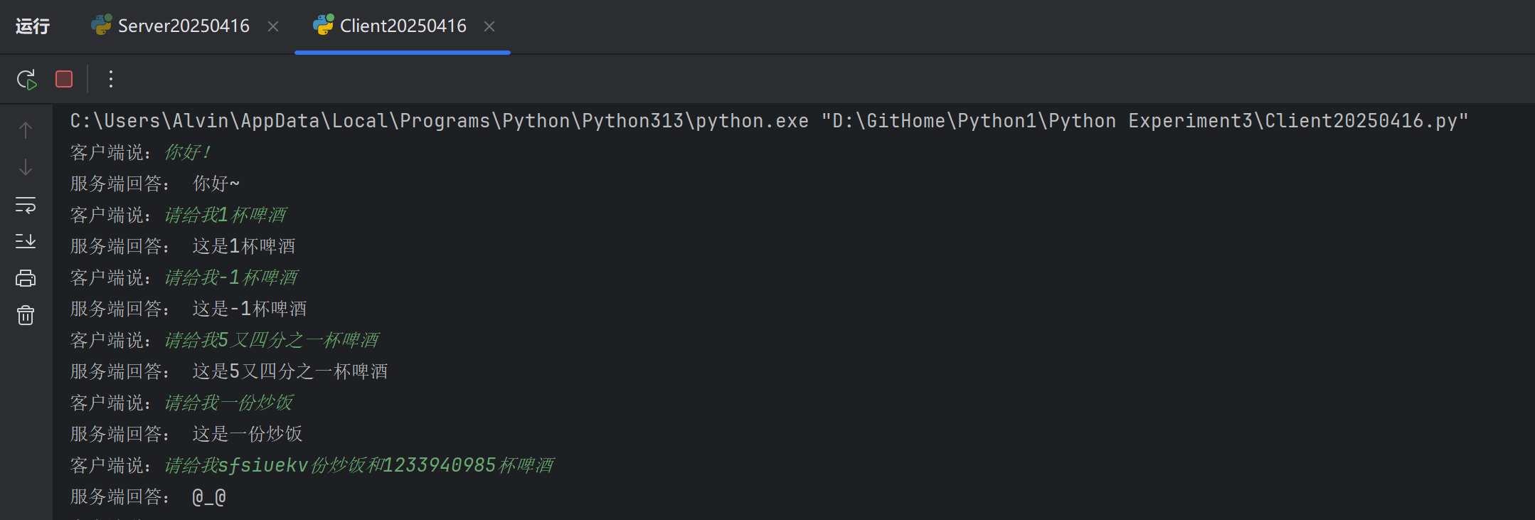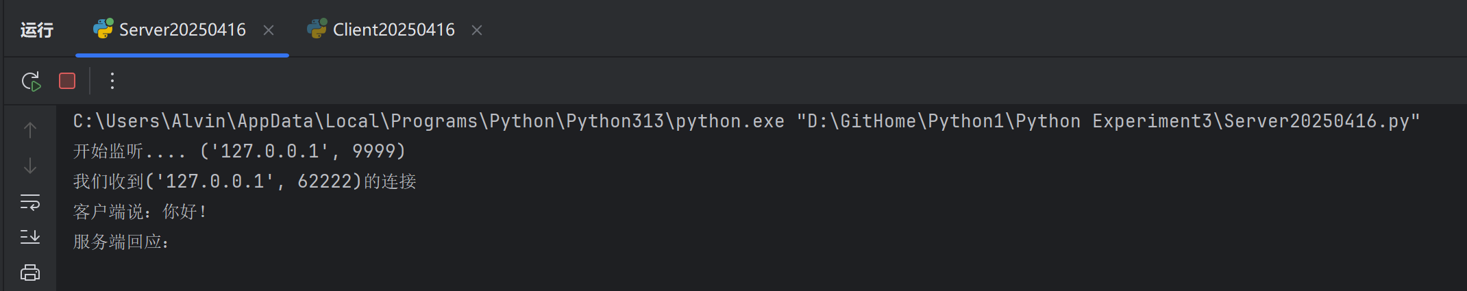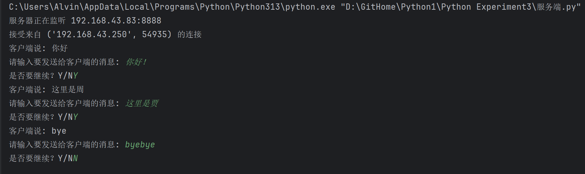 (1)创建服务端和客户端,选择一个通信端口,用Python语言编程实现通信演示程序;