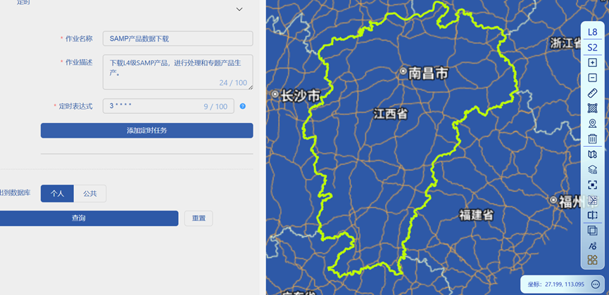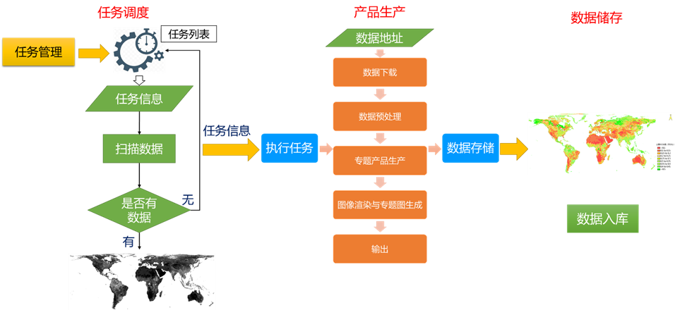基于企业级遥感平台软件技术可以实现“无人值守”模式下完成整个流程,即包括数据检索、下载、预处理、密度分割、统计与制图、入库、发布与共享。