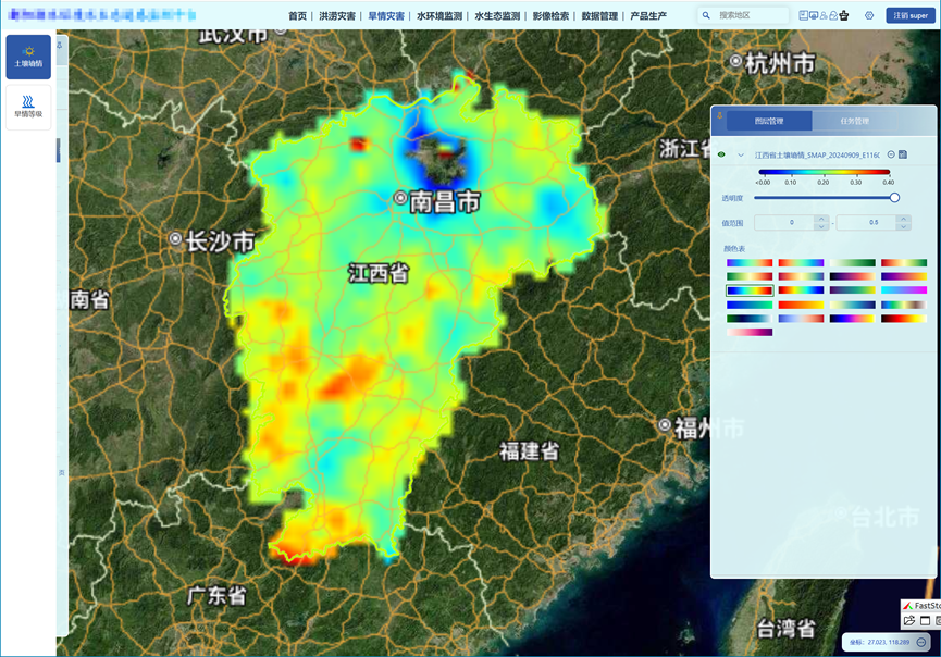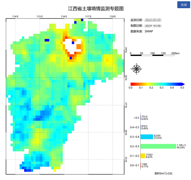 “无人值守”生产的专题产品自动发布与共享,在web端就可以查询和浏览土壤墒情专题数据。