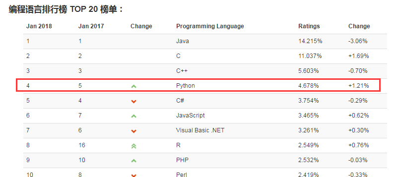 最新的TIOBE排行榜,Python赶超PHP占据第四, Python崇尚优美、清晰、简单,是一个优秀并广泛使用的语言。