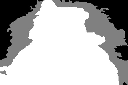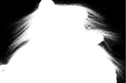 Digital Matting的任务就是将上文所述的未确定部分,通过某种方法确定为前景或者背景,从而得到以下的mask图片。