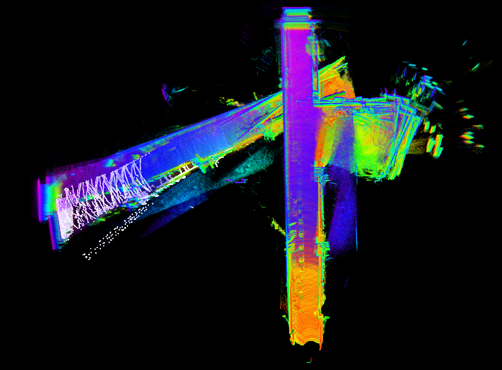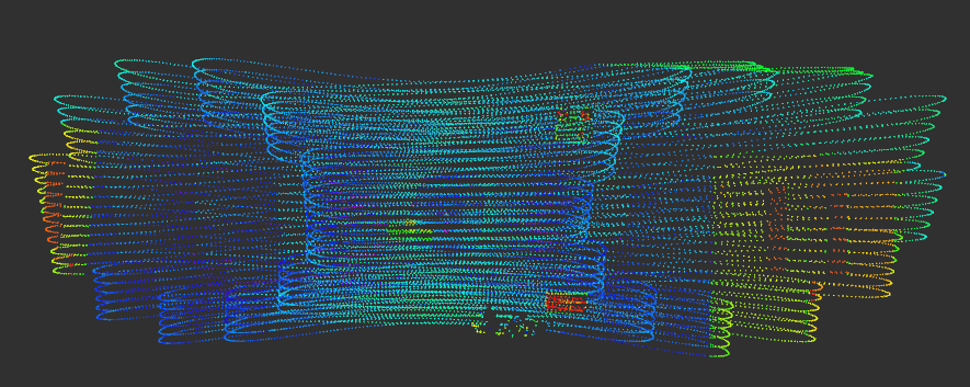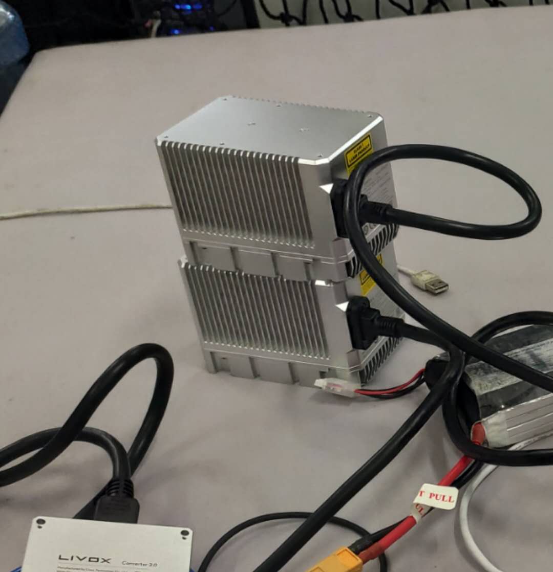 将两台激光雷达垒在一起后同时使用,单个激光雷达的点云没有受到明显的影响。