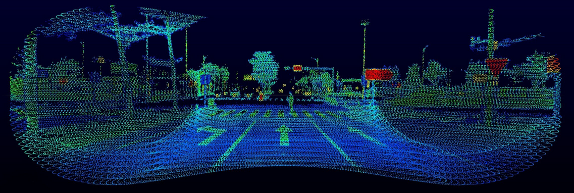 参照manual 上所说的,Livox激光雷达具有0-150级的反射率分辨率,这使得从点云图像上即可分辨出场景中的一些物体,如车道线、红绿灯等: