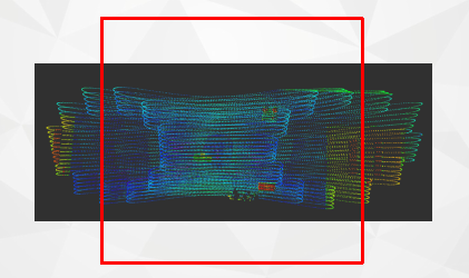 该激光雷达的视场角与8mm的工业相机的视场角的对比图(红框内为相机视场角):