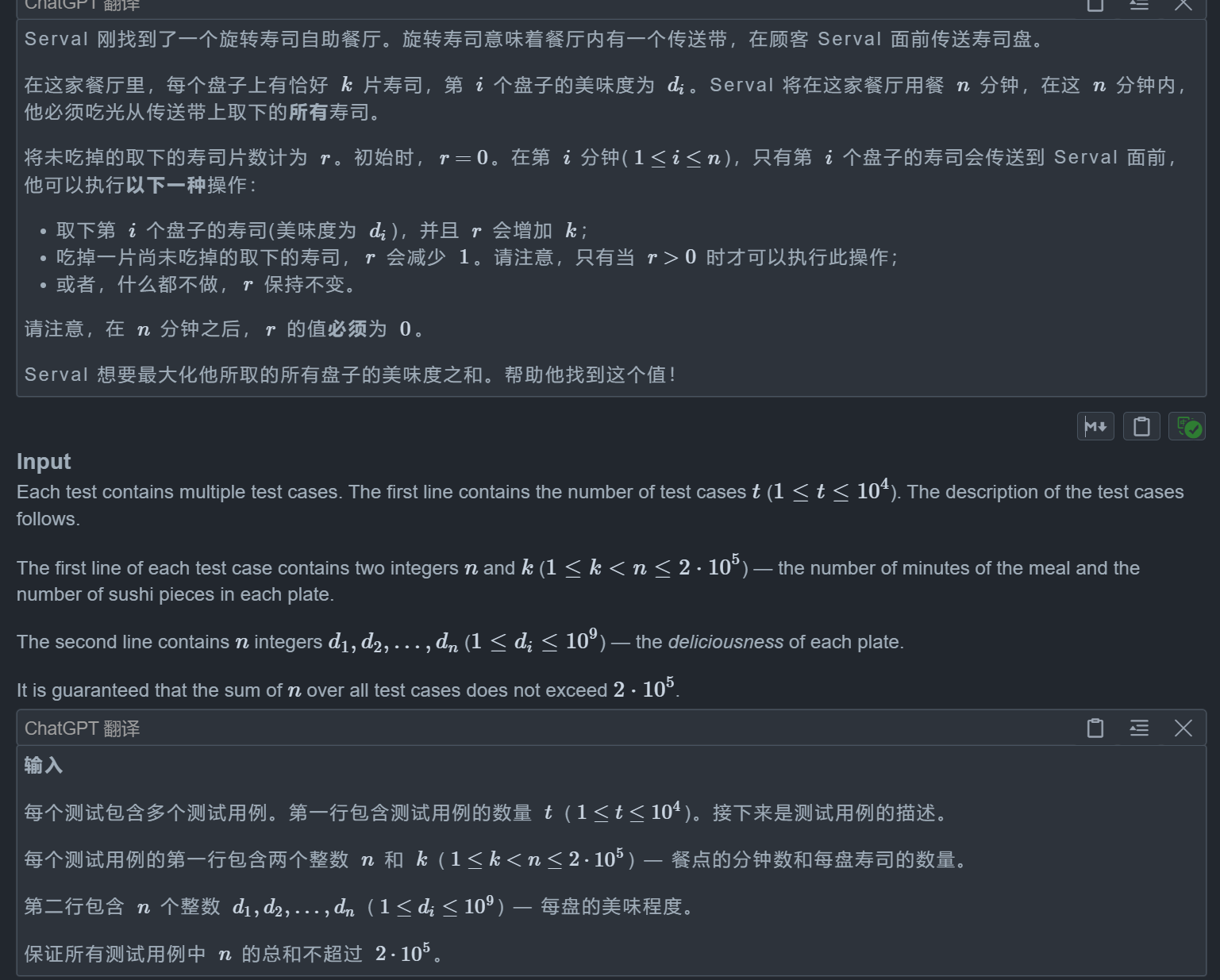 我们可以计算到每一个寿司的最晚拿取时间,然后对于时间进行枚举,如果时间 i 是前 i 个寿司里面某个寿司的最晚拿取时间,我们就可以直接把前面寿司里面的最美味的吃掉即可,这样即不会导致寿司没被吃完,又可以贪心地吃到最美味的寿司。