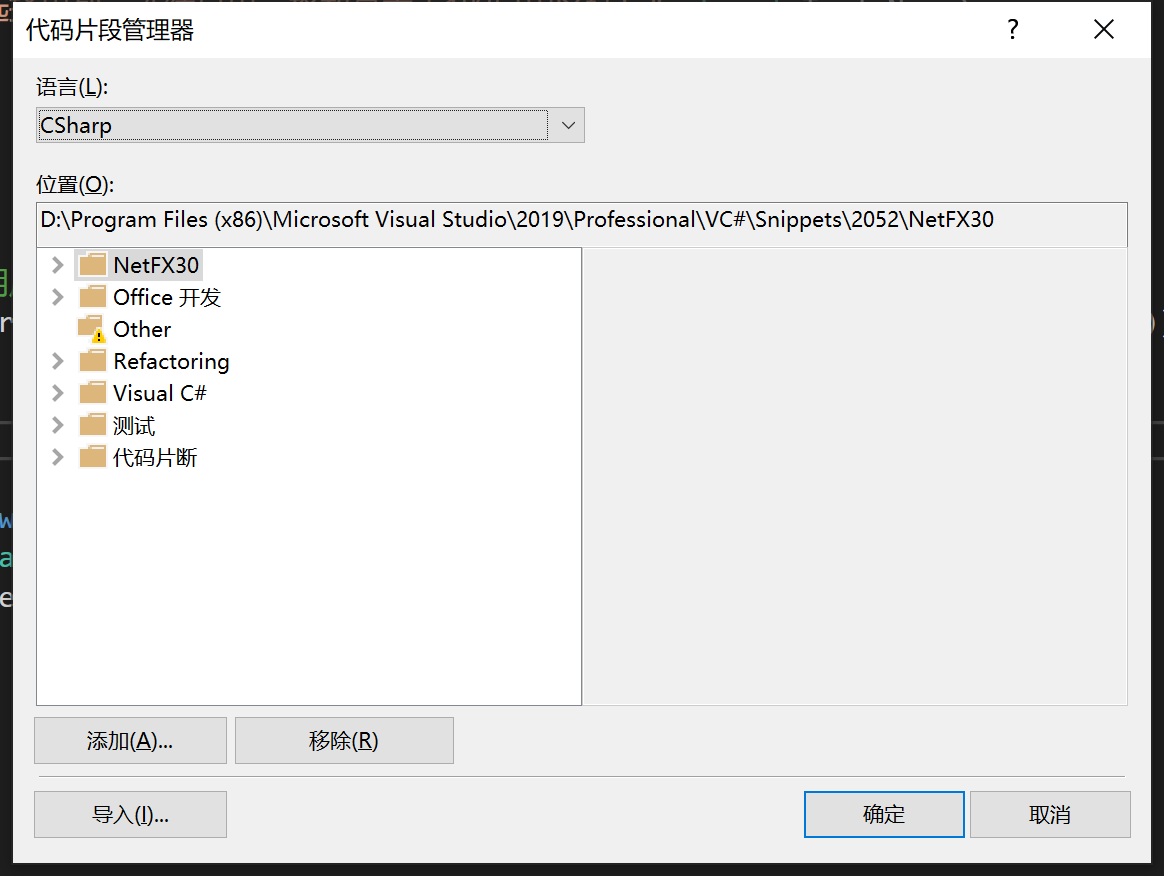 代码片断文件名为 *.snippet,可以自己编写xml语句,也可以用扩展工具添加