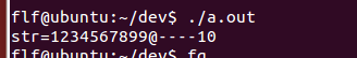 char str[10] = "123456789987654321"; printf("str=%s----%d\n", str, sizeof(str));