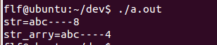 char *str = "abc"; char str_arry[] = "abc"; printf("str=%s----%d\n", str, sizeof(str)); printf("str_arry=%s----%d\n", str_arry, sizeof(str_arry));