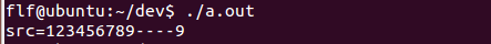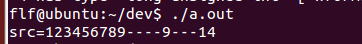 6 char src[] = "123456789\0""123"; 7 8 printf("src=%s----%d---%d\n", src, strlen(src), sizeof(src));