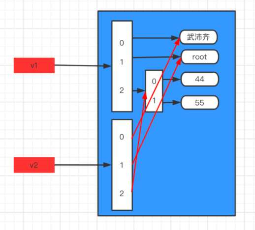 import copy v1 = ["武沛齐", "root", [11, [44, 55], (11, 22), (11, [], 22), 33]] v2 = copy.deepcopy(v1) print(id(v1)) # 140391475456384 print(id(v2)) # 140391475456640 print(id(v1[2])) # 140352552779008 print(id(v2[2])) # 140352552920448 print(id(v1[2][1])) # 140642999940480 print(id(v2[2][1])) # 140643000088832 print(id(v1[2][2])) # 140467039914560 print(id(v2[2][2])) # 140467039914560 print(id(v1[2][3])) # 140675479841152 print(id(v2[2][3])) # 140675480454784 import copy v1 = ["武沛齐", "root", [44, 55]] v2 = copy.deepcopy(v1) print(id(v1)) # 140405837216896 print(id(v2)) # 140405837214784 print(id(v1[2])) # 140563140392256 print(id(v2[2])) # 140563140535744