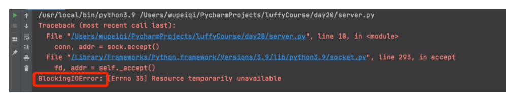 如果代码变成了非阻塞,程序运行时一旦遇到 accept、recv、connect 就会抛出 BlockingIOError 的异常。
