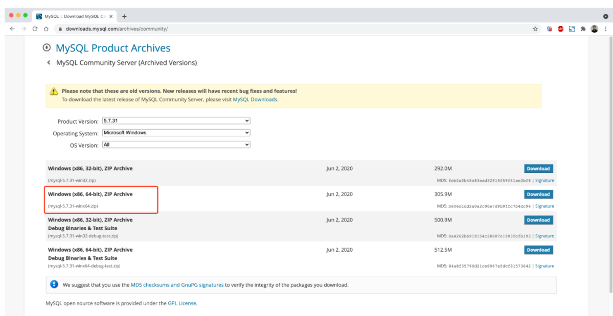 所以,我们课程会以常用大版本中最新的版本为例来讲解,即:5.7.31 (依然有很多企业在用5.6.x,但新项目基本上都是5.7.x了)。