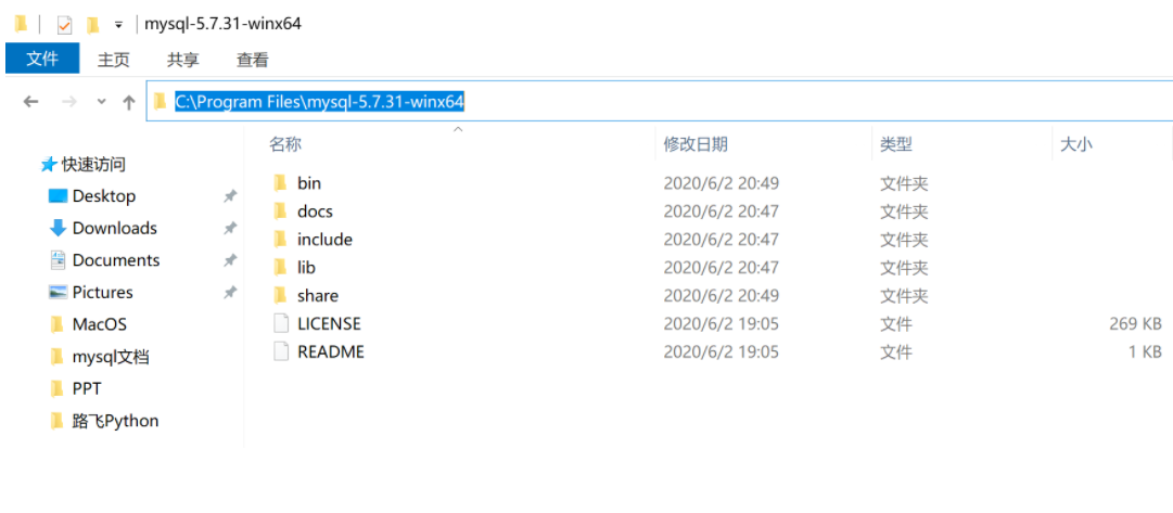 /usr/local/mysql-5.7.31-macos10.14-x86_64/目录。 -