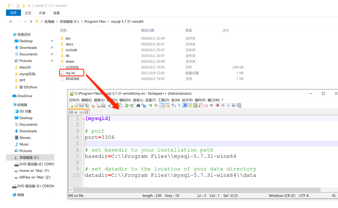 为了避免多个版本共存时,配置文件混乱的问题,建议大家还是把配置文件放在当前MySQL的安装目录下。