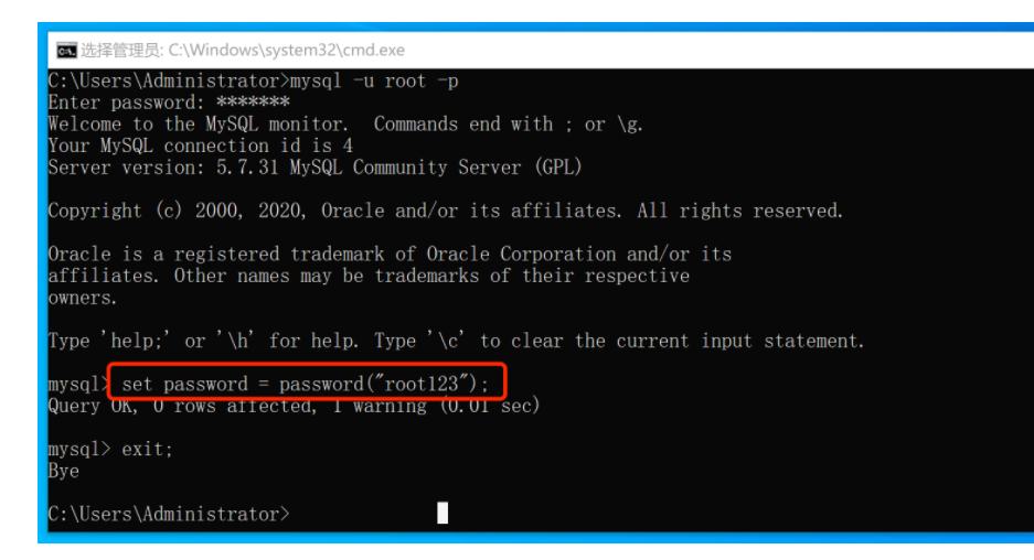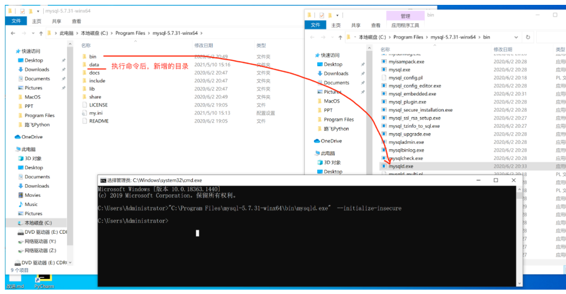 >>> "C:\Program Files\mysql-5.7.31-winx64\bin\mysqld.exe" --initialize-insecure