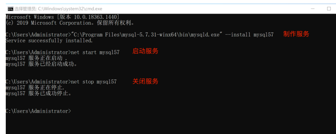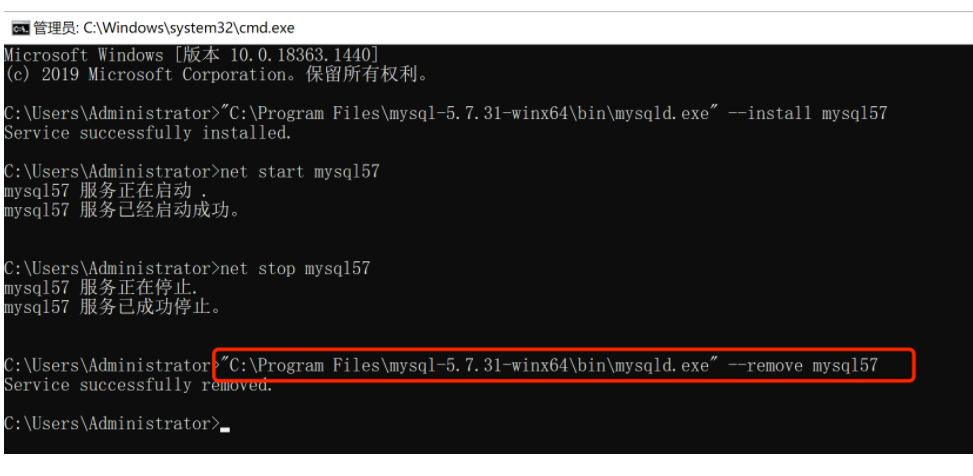 >>>"C:\Program Files\mysql-5.7.31-winx64\bin\mysqld.exe" --remove mysql57![]()