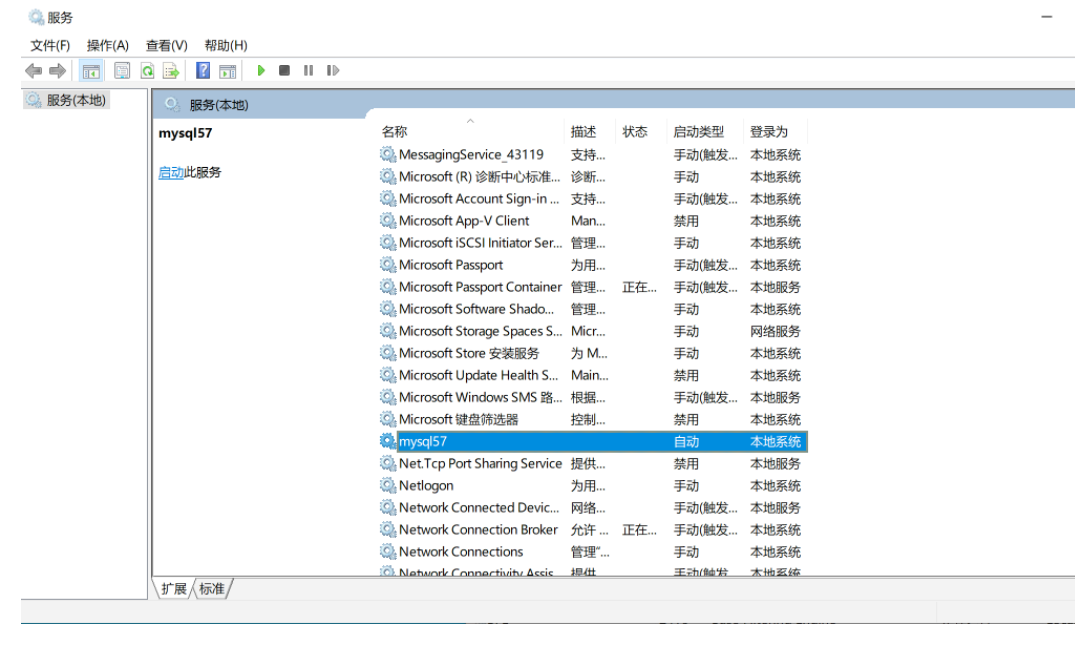 >>> net stop mysql57也可以在window的服务管理中点击按钮启动和关闭服务。例如: