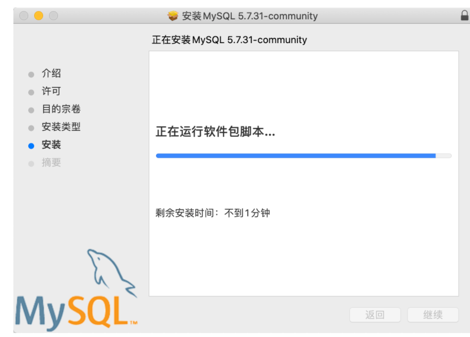 mac系统和win不同,MySQL为他提供了非常方便的一站式安装程序,只要点击、next就可以安装、初始化完成。