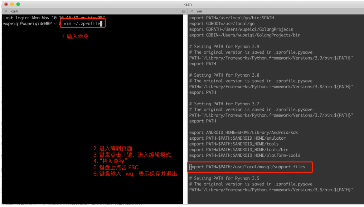 操作完成之后,再在终端执行下命令:source ~/.zprofile 让设置的环境变量立即生效。