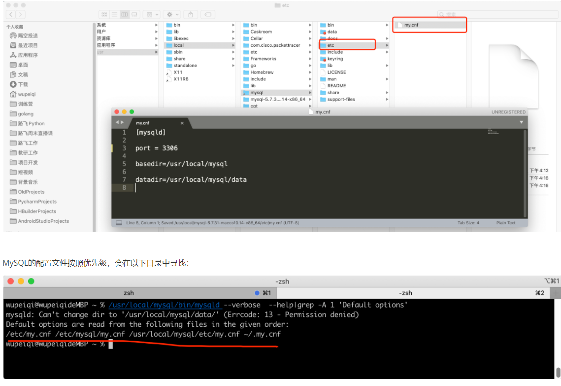 其实,MySQL的配置文件可以放在很多的目录,下图是配置文件的优先级: