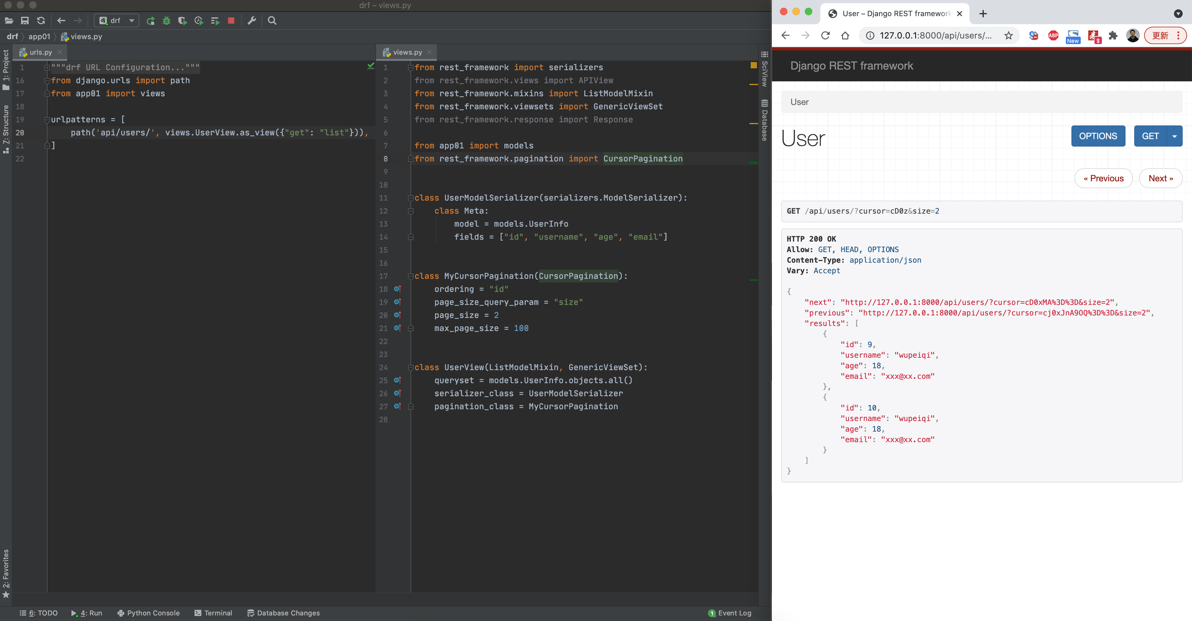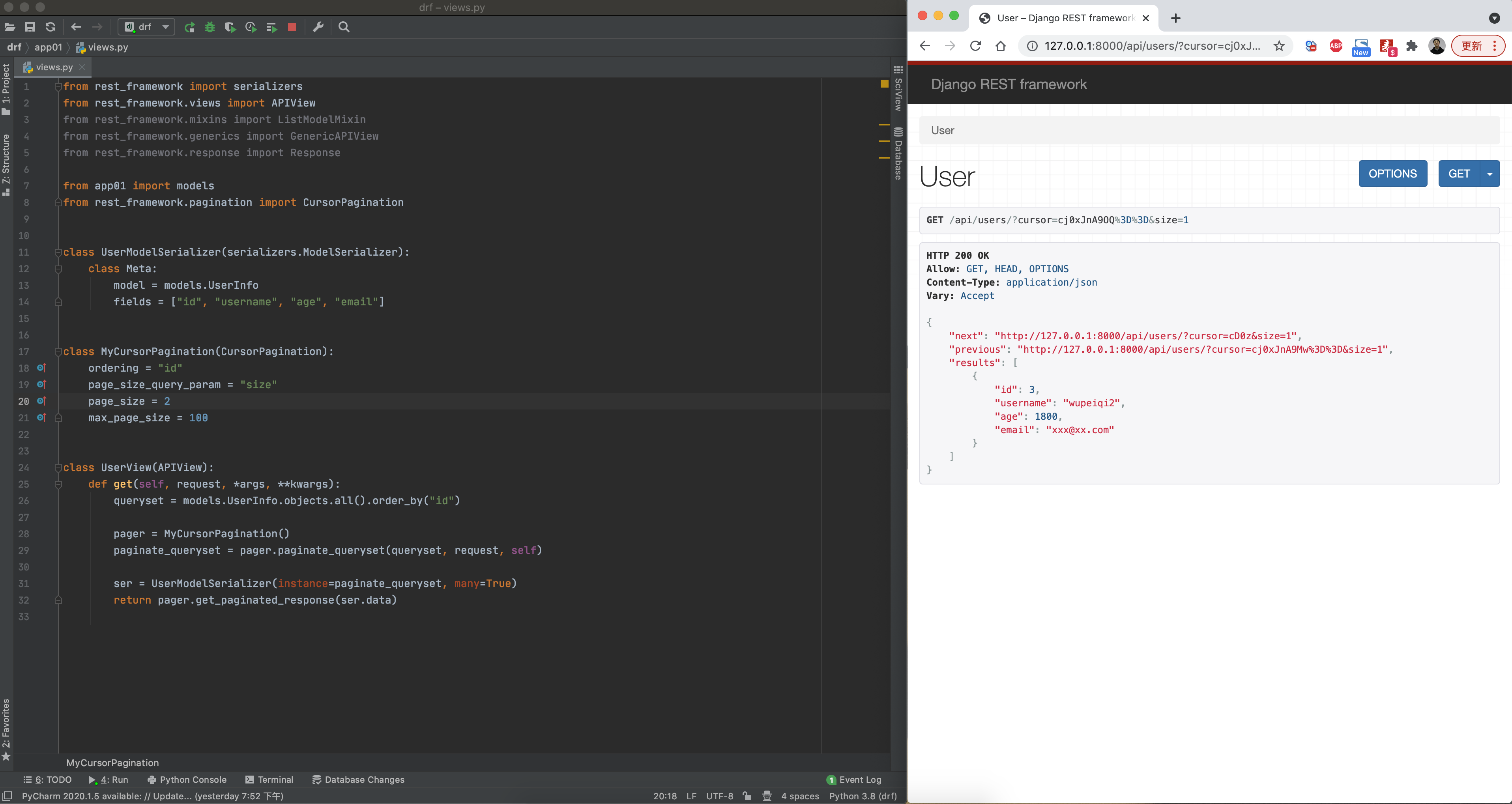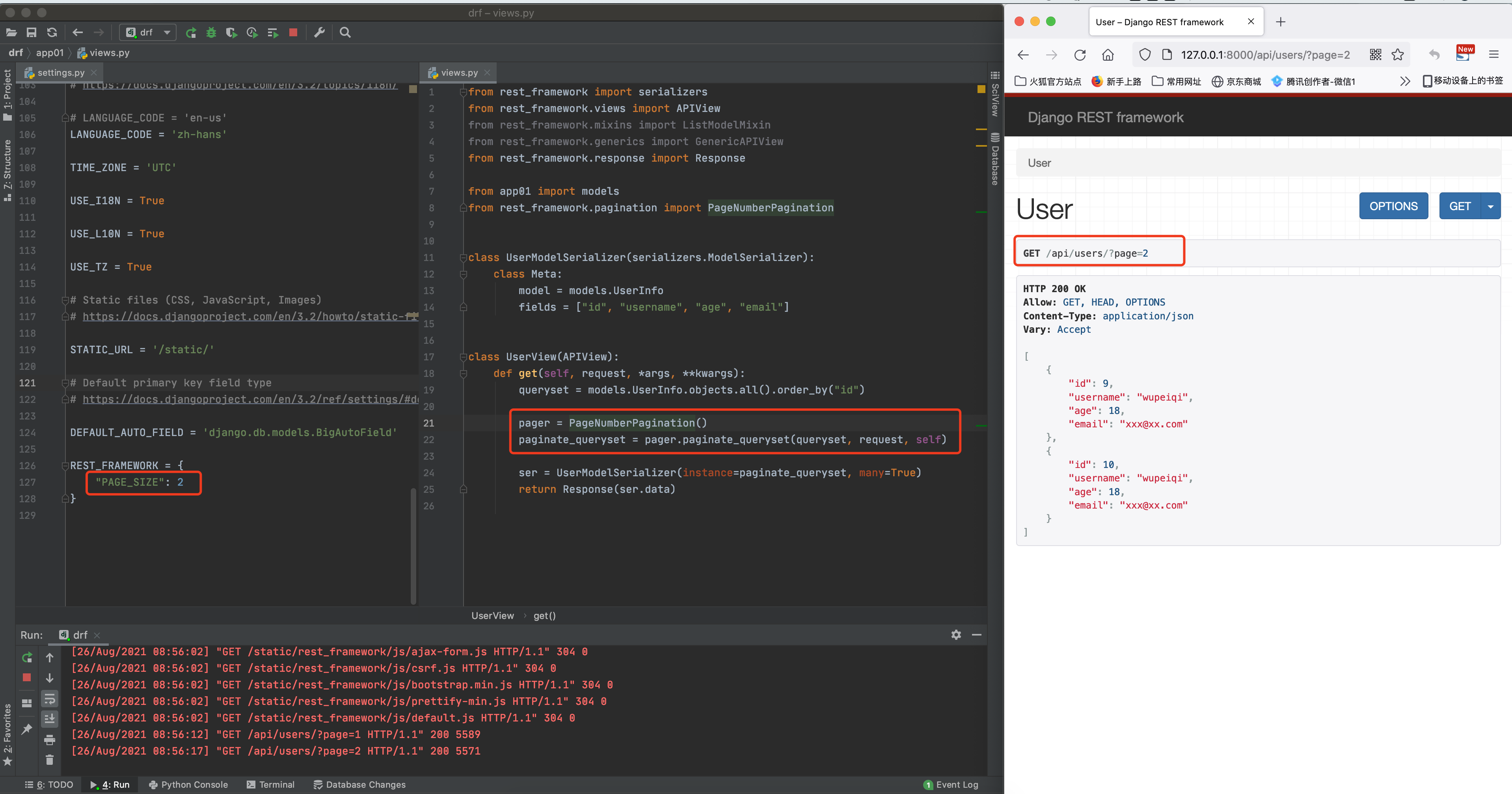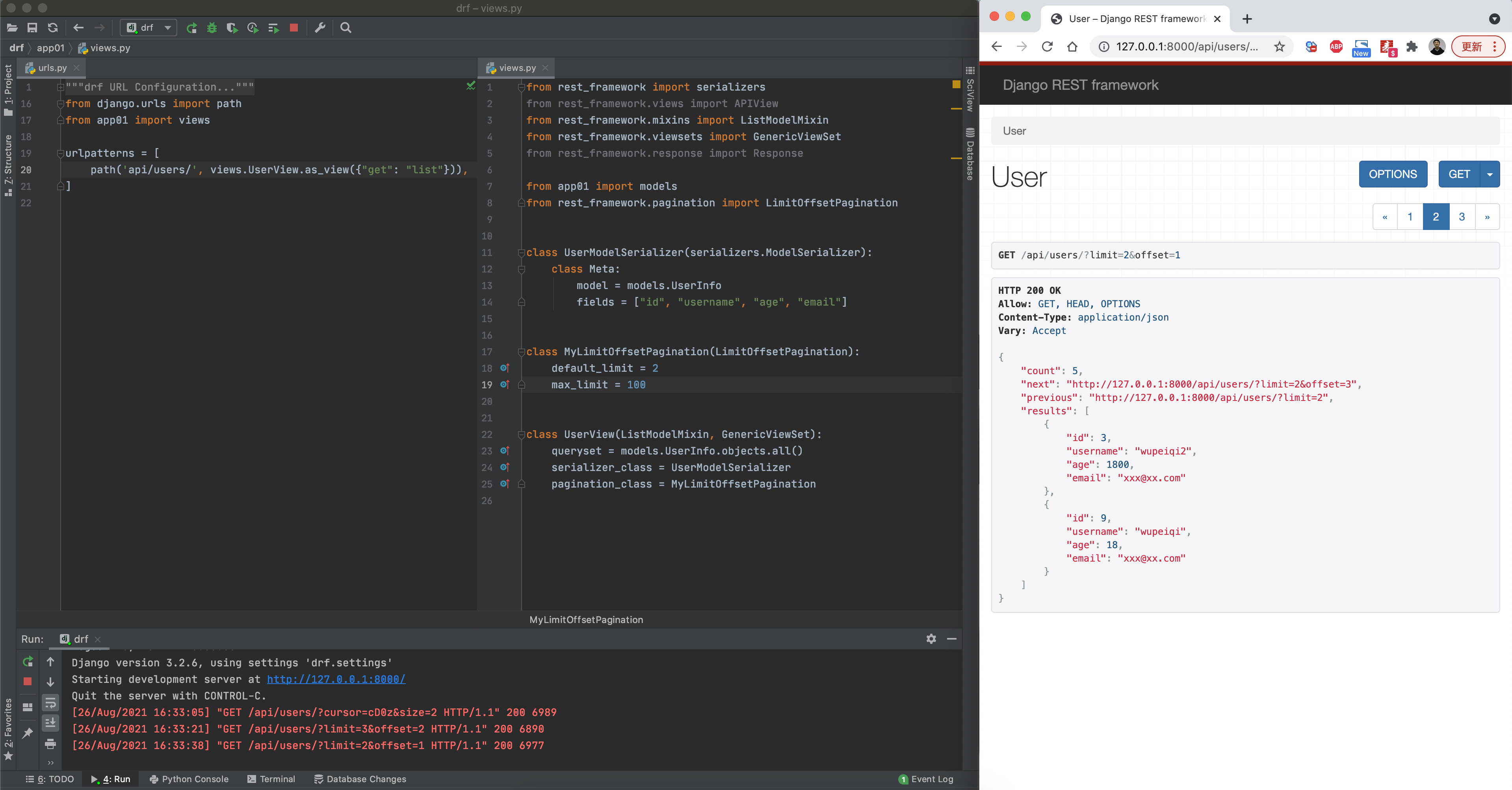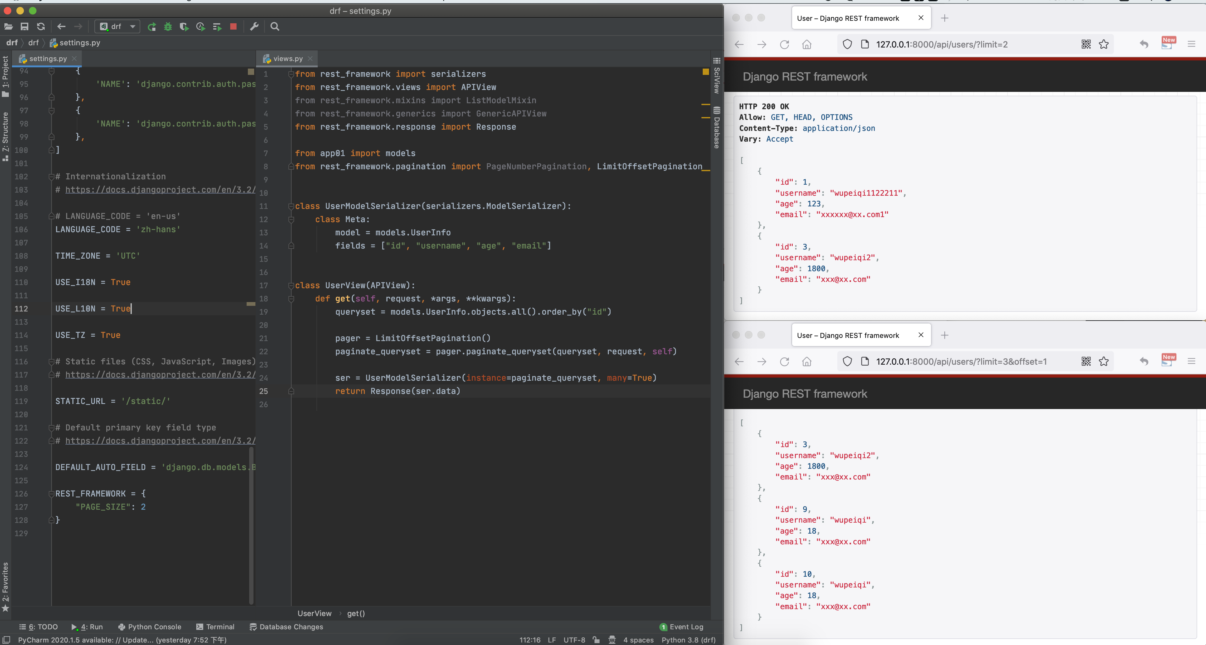 如果是使用 ListModelMixin 或 ModelViewSet ,则只需要配置相关类即可,内部会自动执行相关分页的方法。