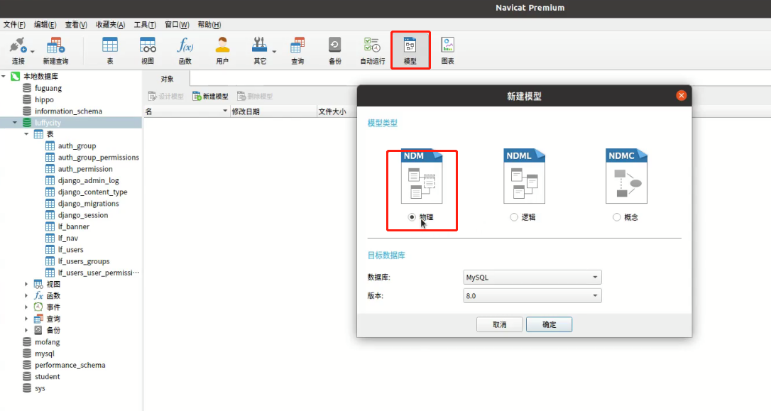 物理模型(根据具体数据库来设计的,powerdesigner、navicat)