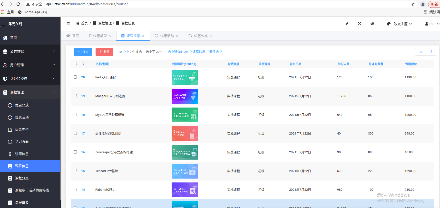 课程相关模型的admin站点配置在列表页中展示模型字段,