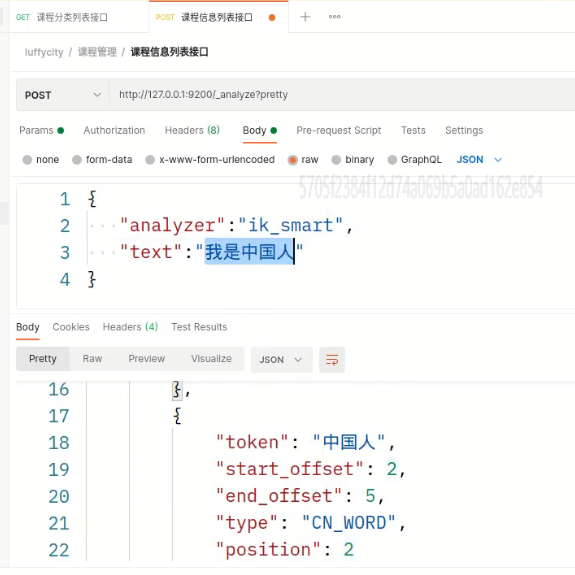 { "analyzer":"ik_smart", "text":"我是中国人" }