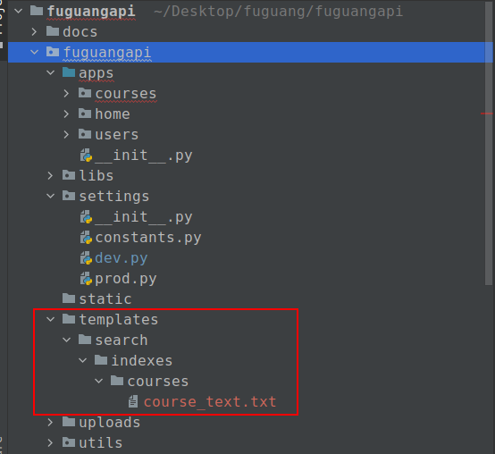 在courses子应用下创建search_indexes.py,用于设置es的索引模型。注意,索引模型的文件名必须是search_indexes。
