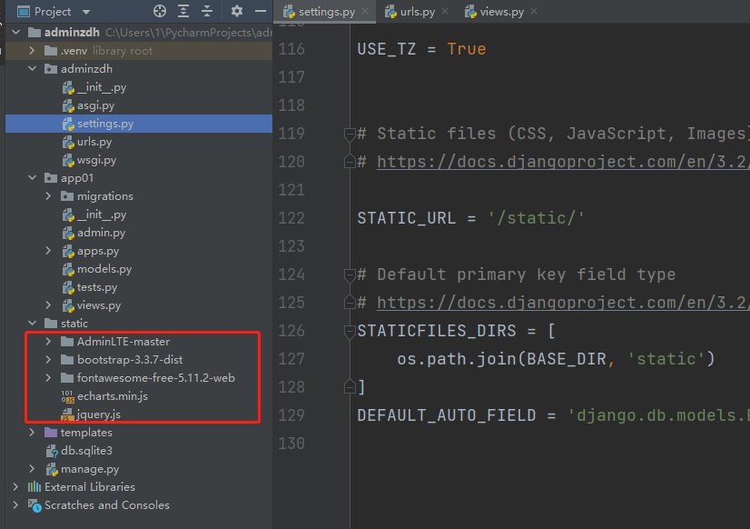 我们copy的是static/AdminLTE-master/starter.index 修改静态文件的引用方式