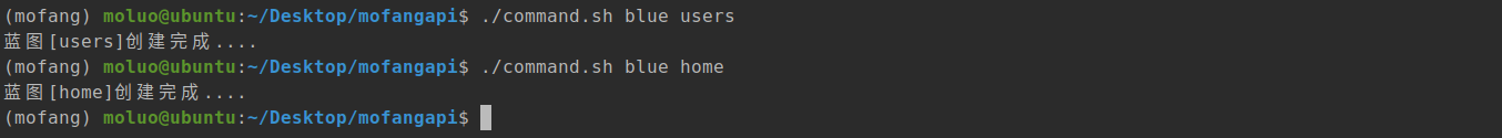 接下来就可以在终端下,通过命令生成蓝图目录了,在项目根目录下创建生成蓝图的shell命令,command.sh: