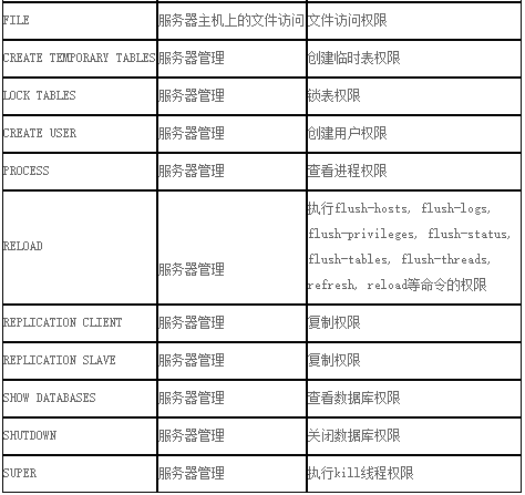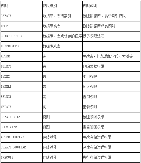 注意:经常有人在创建操作用户的时候不指定WITH GRANT OPTION选项导致后来该用户不能使用GRANT命令创建用户或者给其它用户授权。