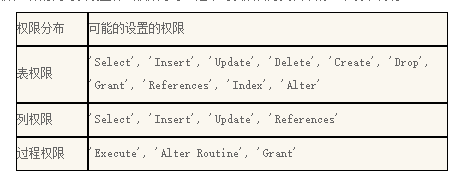 MYSQL的权限如何分布,就是针对表可以设置什么权限,针对列可以设置什么权限等等,这个可以从官方文档中的一个表来说明:MySQL权限控制1、GRANT命令使用说明:创建一个只允许从本地登录的超级用户fog,并允许将权限赋予别的用户,密码为:test123
