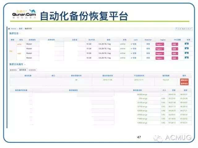 前期还有一个细节往往被忽视,备份节点选择没有和集群信息实时联动起来。因为备份的影响DBA通常是在读节点或离线节点进行数据备份,当集群维护发生主从切换,因为信息未联动起来造成原来部署有备份任务的读节点变成写节点来进行备份,放大了备份对业务的影响。Qunar DBA明确要求备份任务部署到读节点,备份任务开启时对集群节点进行角色检测,当集群发生切换导致节点变化,备份节点会自动切换到实时读节点上进行备份。即保证备份永远只会在读节点进行备份任务发起。