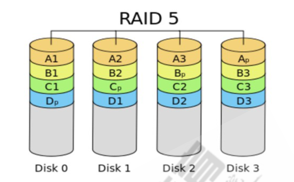 RAID的级别:多块磁盘组织在一起的工作方式有所不同