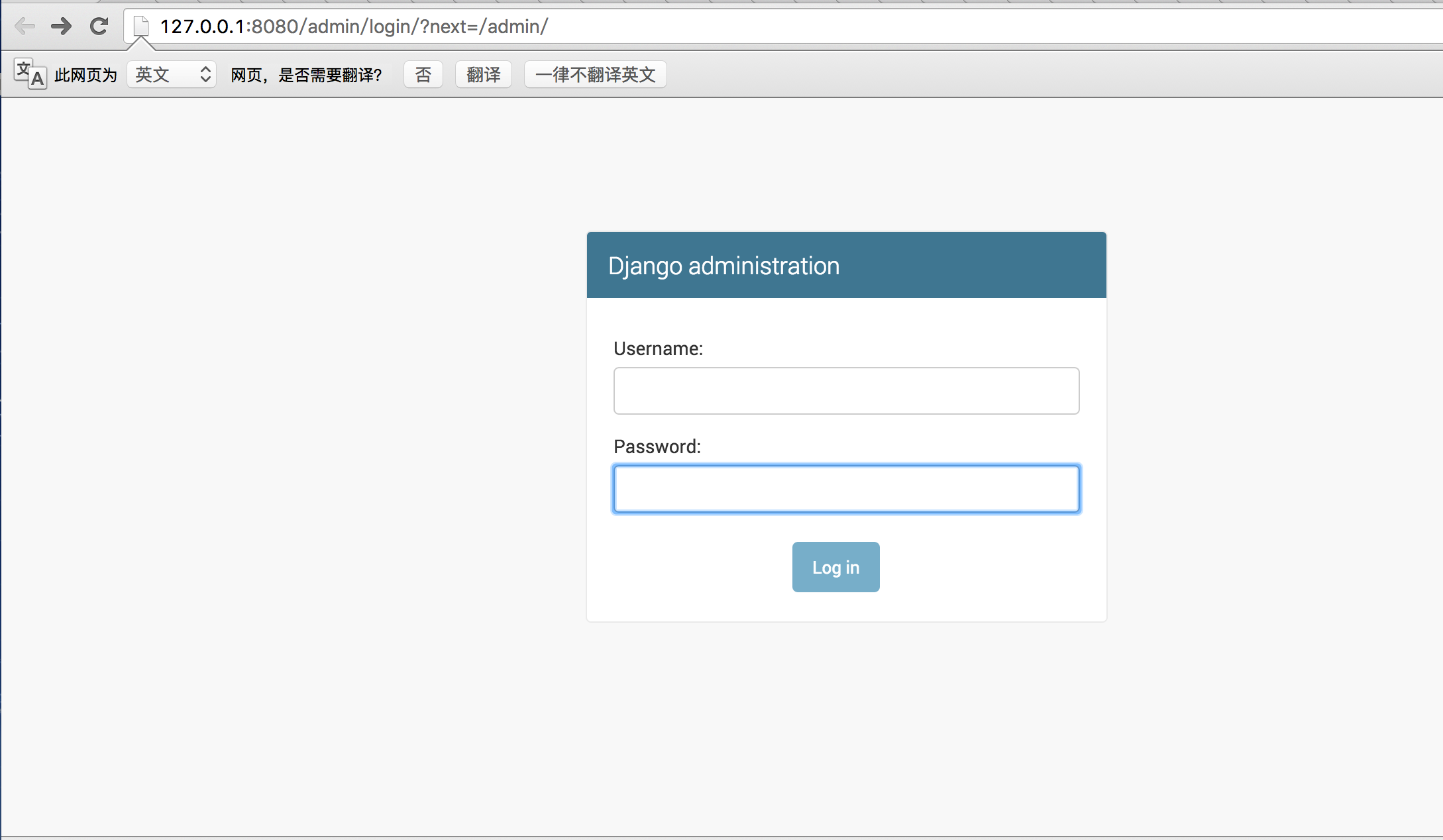 <5> 当访问http://127.0.0.1:8080/admin/时,会出现: