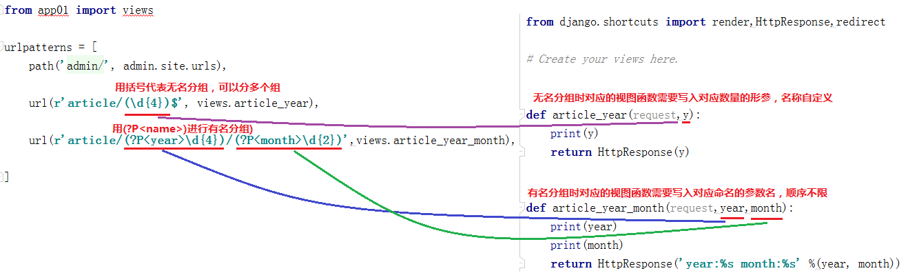 参数可以直接传给该url对应的views视图函数里,进行逻辑处理