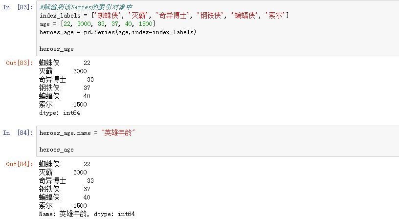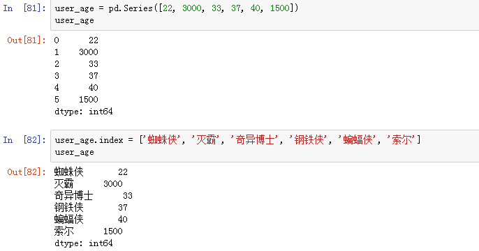 方法二:建立好Series之后,用一个新的列表(或者其他有序序列)赋值到该Series的索引对象Index中