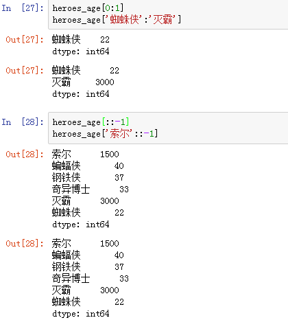 注意:切片方法有点差异,用索引是不取末端,用索引标签取末端