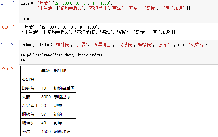 通过字典转化为DataFrame类型时,"键" 会作为列标签,"键"对应的"值" 会作为该列名对应的数据列