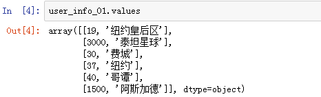 同样,DataFrame也可以利用 .values 属性获得ndarry数据